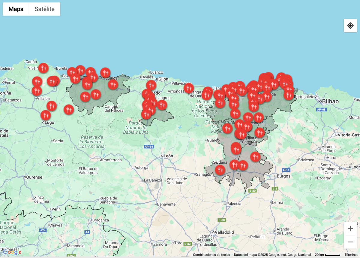 La otra gran distribuidora de EDP es Viesgo que con ella se completa el mapa español con Cantabria y parte de Galicia. Este sería su mapa.