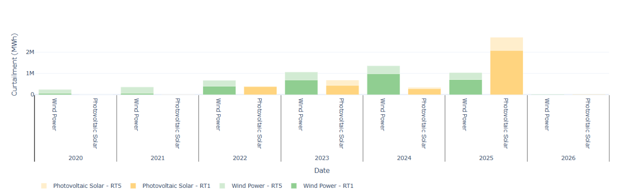 2025 es, sin duda, el año del apagón. Pero también lo es de los curtailments para las tecnologías renovables, sobre todo para la solar fotovoltaica. Las pérdidas de energía han llegado el año pasado en el sistema eléctrico español a niveles insospechados, tanto, que algunos activos están en quiebra total.