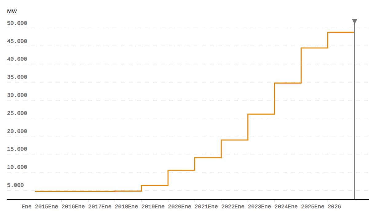 Crecimiento de la energía solar fotovoltaica en España.Fuente: REE