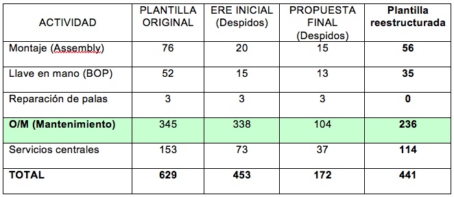 El proceso de negociación del ERE en GES (Global Energy Services) ha llegado su fin. Después de casi un mes, la empresa ha puesto encima de la mesa su propuesta definitiva. No han cambiado sustancialmente las cifras de despido excepto en el área de mantenimiento preventivo: De los 338 despidos iniciales, ahora propone 104.