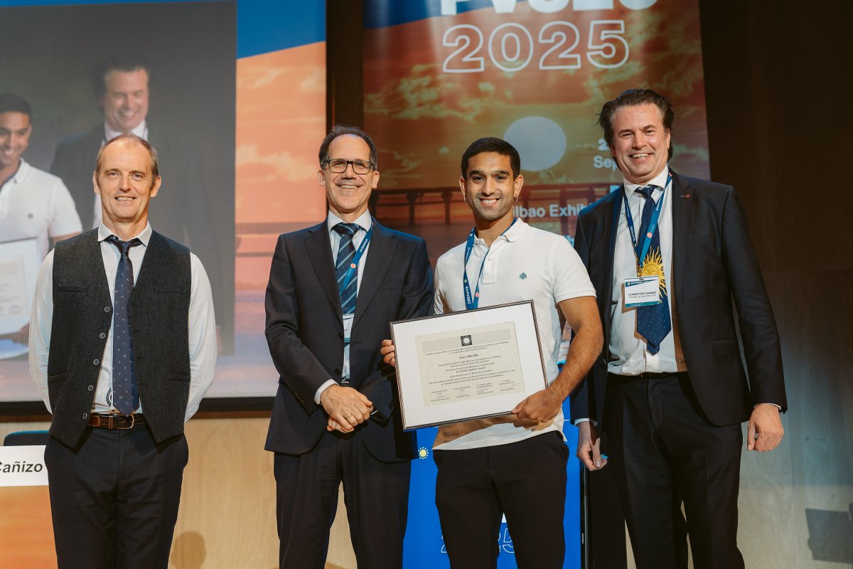 Asier recoge el premio en la EU PVSEC celebrada en Bilbao.
