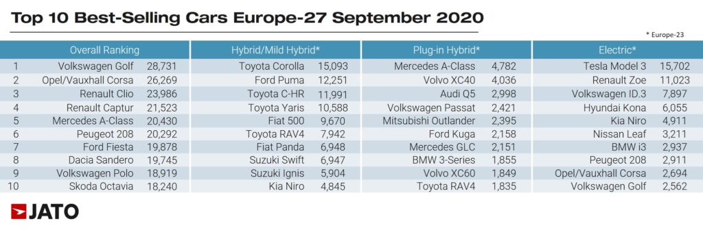 Tesla lideró la demanda de coches eléctricos puros, aunque su volumen cayó un 5%, mientras que sus rivales más cercanos como Volkswagen y Renault registraron aumentos del 352% y 211% respectivamente. Si miramos a todos los fabricantes de automóviles, Volkswagen Group es ahora el fabricante de BEV más vendido en Europa, por delante de Tesla. En septiembre, Mercedes-Benz era el líder en el segmento de híbridos enchufables con una participación de mercado del 22%, seguido de Volvo y BMW.