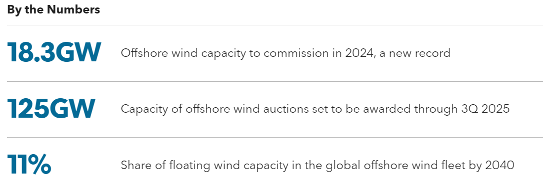 En el mercado estadounidense se espera que hasta finales del tercer trimestre de 2025 se adjudiquen hasta 125 GW de arrendamientos y contratos de energía eólica marina, lo que impulsará la construcción hasta la década de 2030.