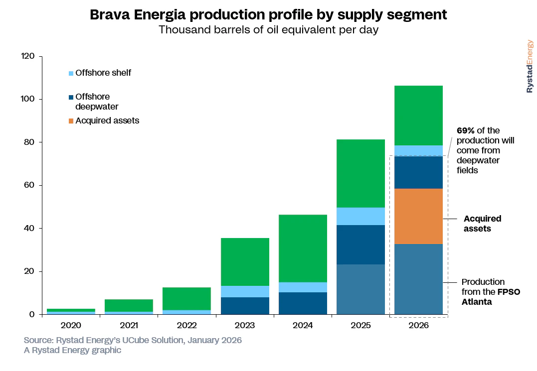 Una vez completada la operación, valorada en 450 millones de dólares, Brava Energia tendrá capacidad para producir más de 100.000 barriles equivalentes de petróleo (boe) por día y podría entrar este año en el grupo de los cinco mayores productores del país.