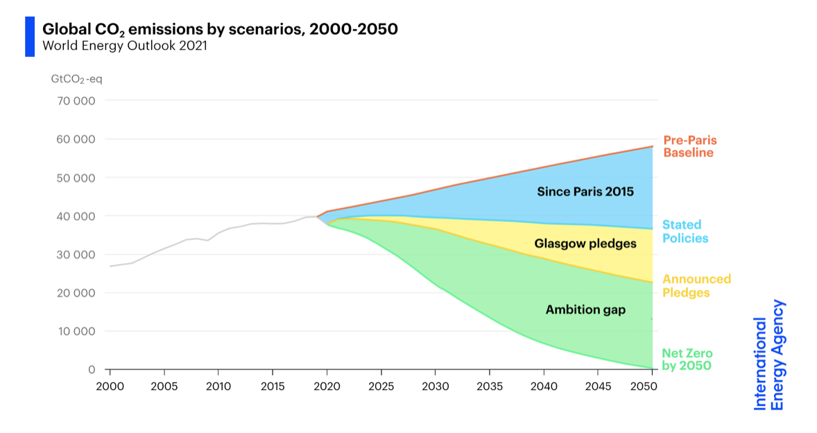 Las diferencias entre los resultados del Escenario de promesas anunciadas y el Escenario de emisiones netas cero para 2050 son marcadas, lo que destaca la necesidad de compromisos más ambiciosos para que el mundo alcance el cero neto a mediados de siglo.