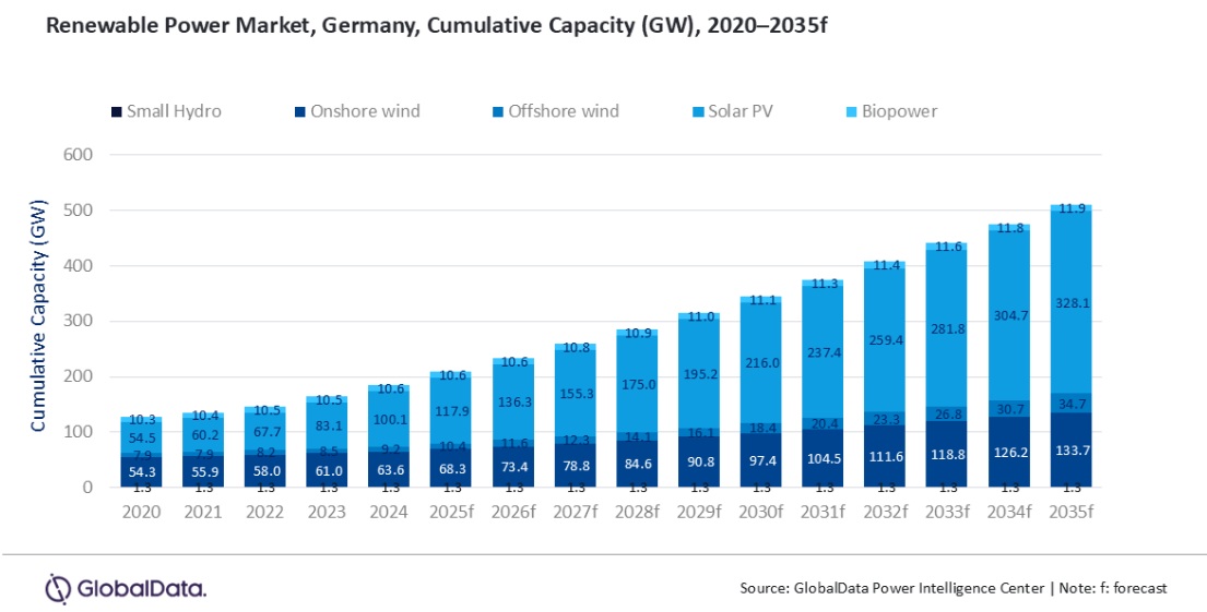 En este contexto, se prevé que la capacidad acumulada de energía renovable en Alemania alcance los 509,9 GW en 2035, con una tasa de crecimiento anual compuesta (CAGR) del 9,7% entre 2024 y 2035, según la firma de análisis y datos GlobalData.