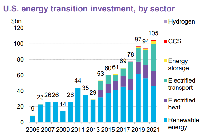 De la inversión privada del año pasado en EEUU, 47.000 millones de dólares fueron para energía renovable y 35.000 millones apoyaron el transporte electrificado, según el informe, titulado "[2022 Sustainable Energy in America Factbook](file:///C:/Users/joser/Downloads/2022-Sustainable-Energy-in-America-Factbook.pdf)".