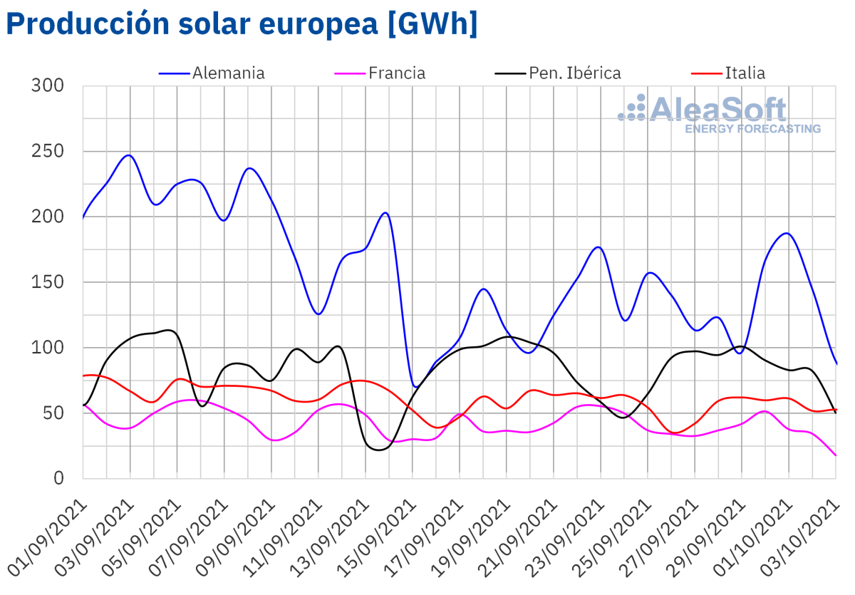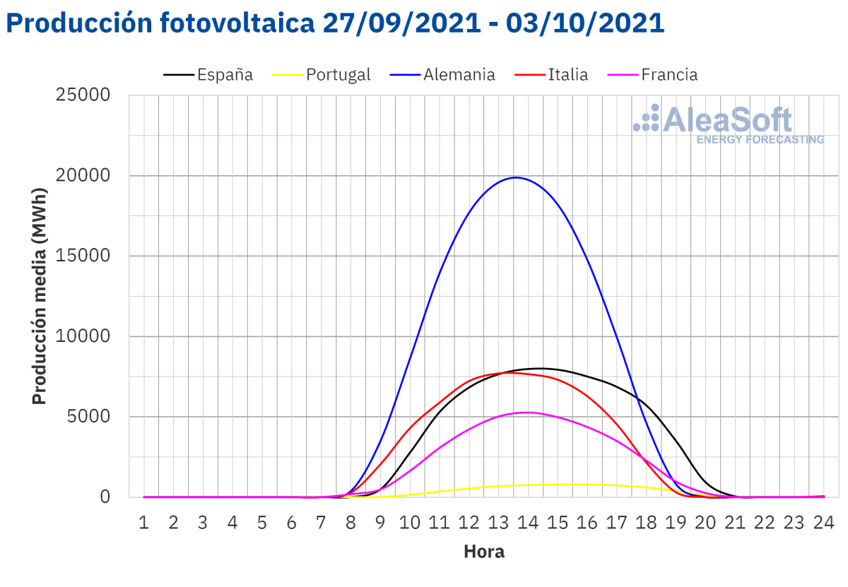Fuente: Elaborado por AleaSoft Energy Forecasting con datos de ENTSO-E, RTE, REN, REE y TERNA.