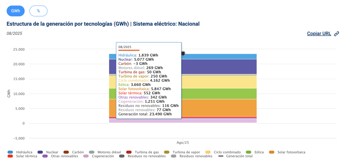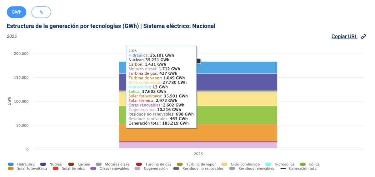 En lo que va de 2025, las tecnologías son las mismas, estas cinco las que mandan en el mix eléctrico, pero en distinto orden.