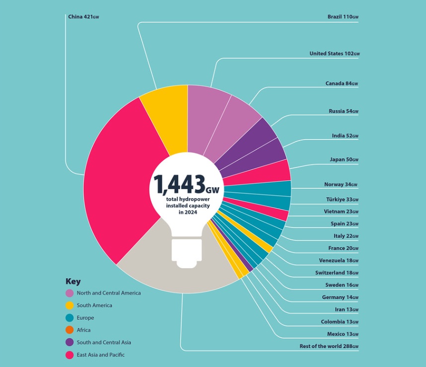 La energía hidroeléctrica sigue siendo la mayor fuente de electricidad renovable del mundo, ya que suministra el 14,3 % de la energía mundial y contribuye a la flexibilidad del sistema eléctrico en más de 150 países.