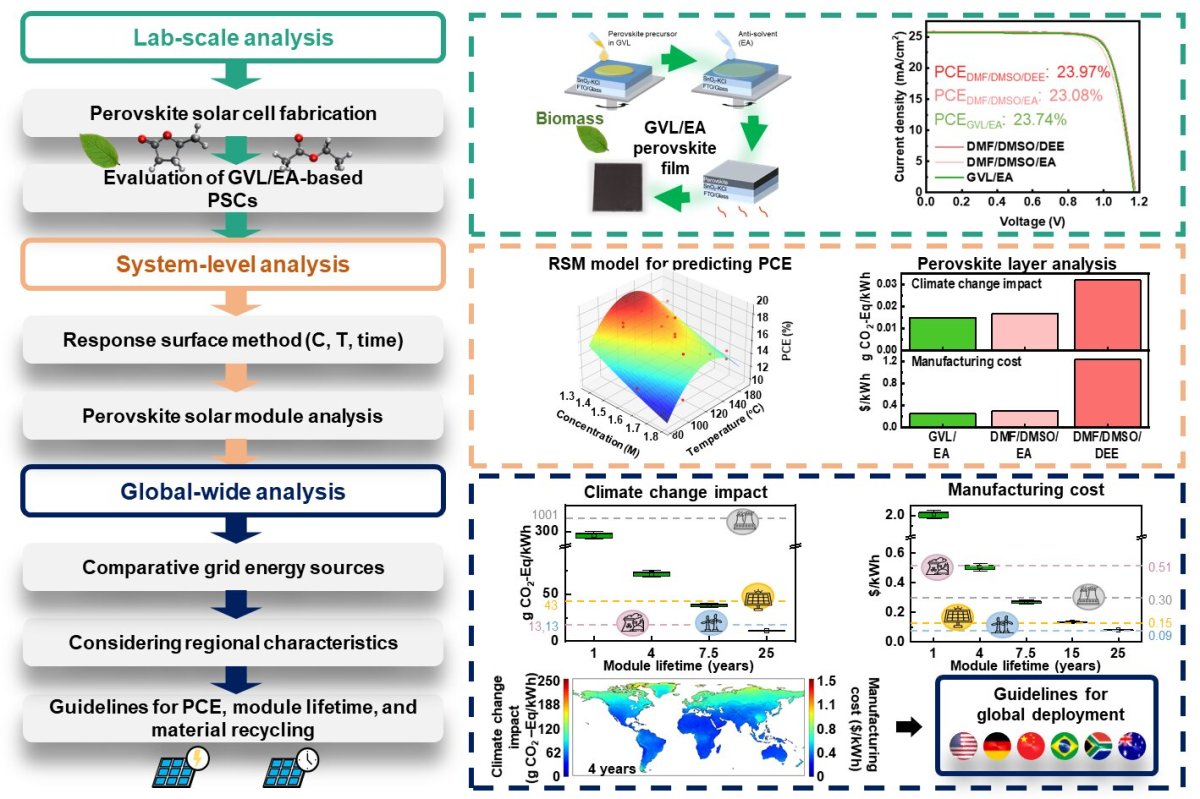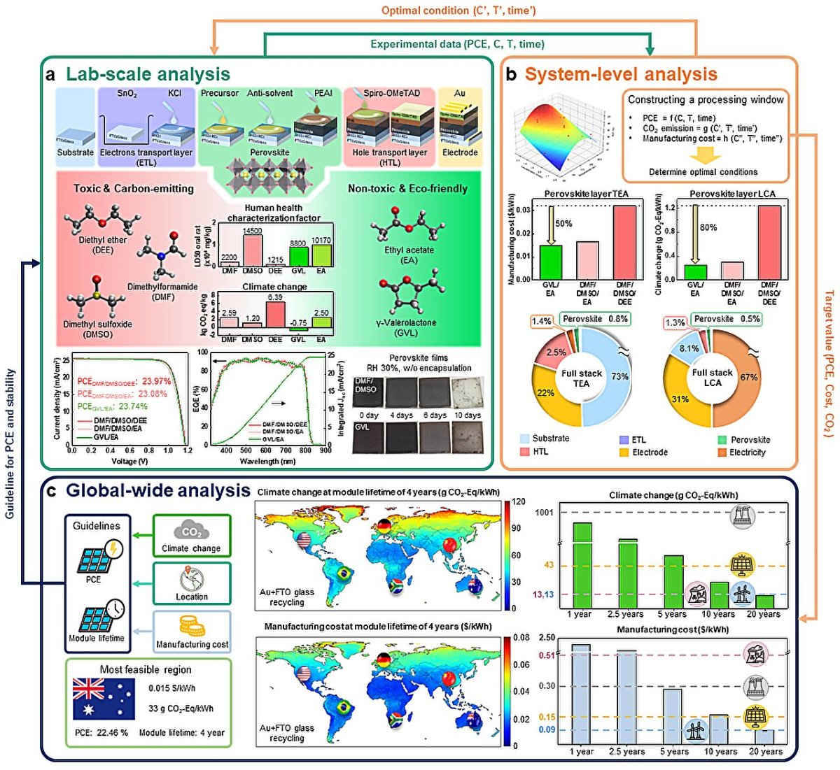 El proceso GVL-EA desarrollado por el equipo de investigación reduce a la mitad el coste de fabricación de las células solares de perovskita y disminuye el impacto climático en más del 80 %. Además, confirmaron que considerar conjuntamente la vida útil del módulo y las estrategias de reciclaje puede ayudar a determinar el punto de equilibrio para la comercialización en diferentes regiones.
