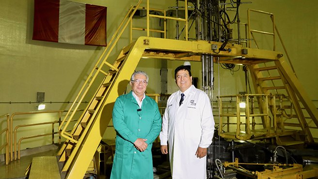 El Ministro de Defensa de Perú, Walter Enrique Astudillo y el presidente del Instituto Peruano de Energía Nuclear (IPEN), Rolando Páucar