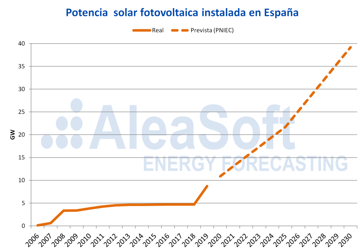 Los retos a los que se enfrenta el mercado energético europeo, con el inminente aumento de producción con fuentes renovables para lograr los objetivos de reducción de emisiones de CO~2~ planteados en los Planes Nacionales de Energía y Clima (PNIEC), son grandes. En el último borrador del Plan que el gobierno español ha enviado a la Unión Europea, se plantea como objetivo llegar a los 39 GW de capacidad solar fotovoltaica en 2030. Eso son 31 GW de fotovoltaica a instalar en diez años, además de los 25 GW de eólica y los 5 GW de termosolar.