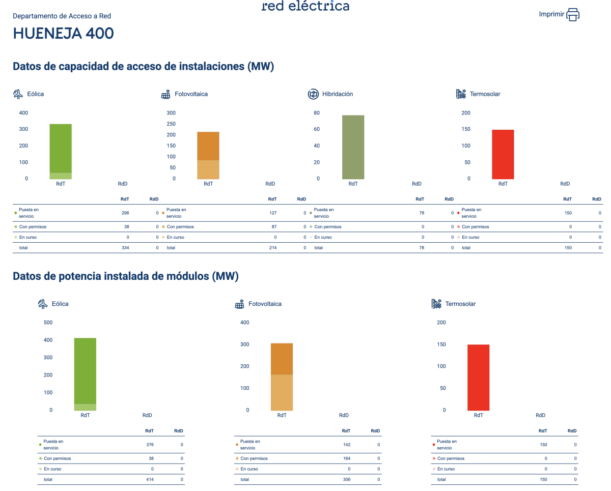 Concretamente existen 376 MW eólicos, 142 MW fotovoltaicos y 150 MW termosolares, en total 668 MW conectados y tienen permisos otros proyectos por otros casi 200 MW de eólica y fotovoltaica.