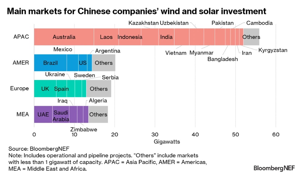 Las empresas chinas están ampliando su presencia en el sector global de energía limpia, invirtiendo un promedio de 4-5 gigavatios de capacidad eólica y solar en el extranjero cada año durante los últimos seis años. Estas inversiones se apoyan en la fortaleza manufacturera de China y extienden su influencia en la transición energética global.