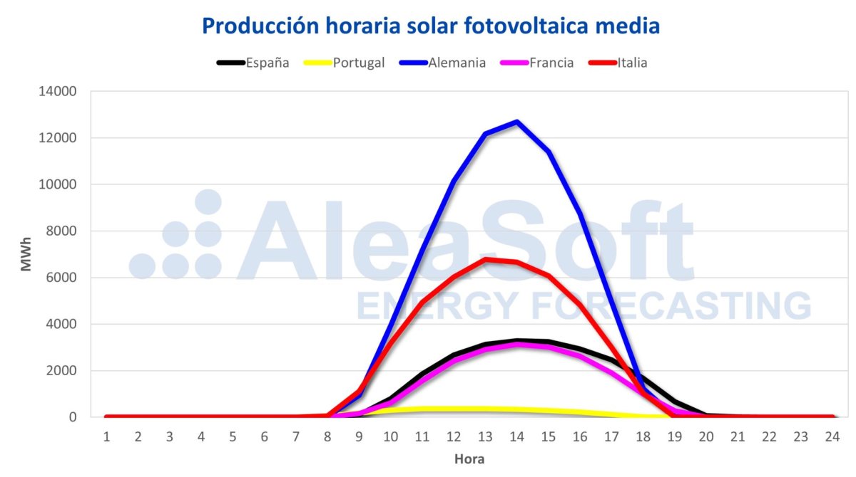 Fuente: Elaborado por AleaSoft con datos de ENTSO-E, REE y TERNA.