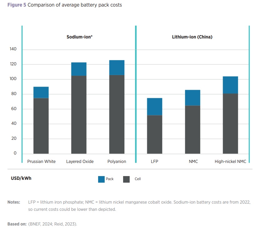 Un informe de la Agencia Internacional de Energías Renovables (IRENA) señala que las baterías de iones de sodio S(IB) podrían ofrecer importantes oportunidades de ahorro de costes en aplicaciones como los vehículos eléctricos y el almacenamiento de energía a gran escala. De hecho, algunos fabricantes esperan que el costo de las celdas SIB baje hasta apenas 40 USD/kWh una vez que aumente la escala de producción