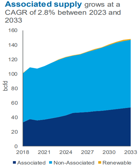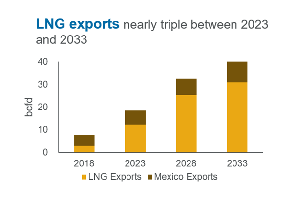Aunque el crecimiento se desacelerará después de 2030, una variedad de incentivos incluidos en la Ley de Reducción de la Inflación de 2022 (IRA) respaldarán la demanda de gas natural de América del Norte a largo plazo, como la captura y el almacenamiento de carbono, así como el hidrógeno. El desarrollo en estas áreas impulsará la demanda de gas a largo plazo.