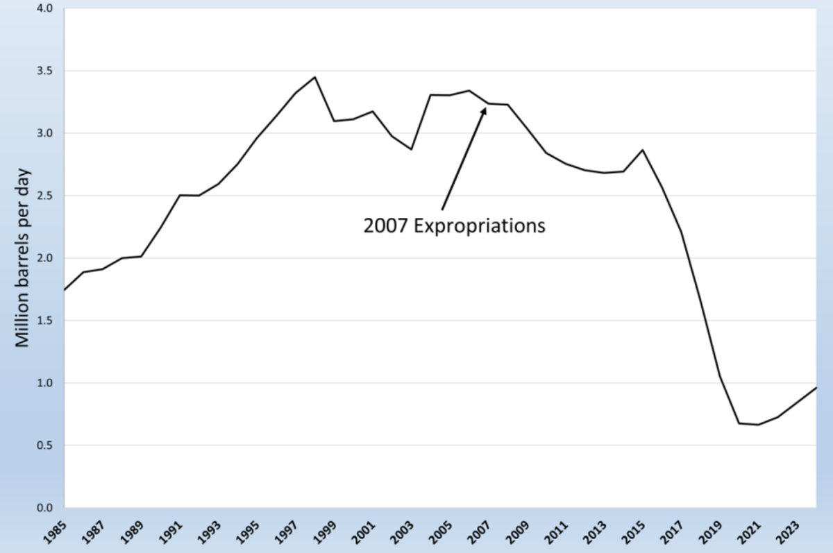 Expropiaciones y producción petrolera de Venezuela (1985-2024)