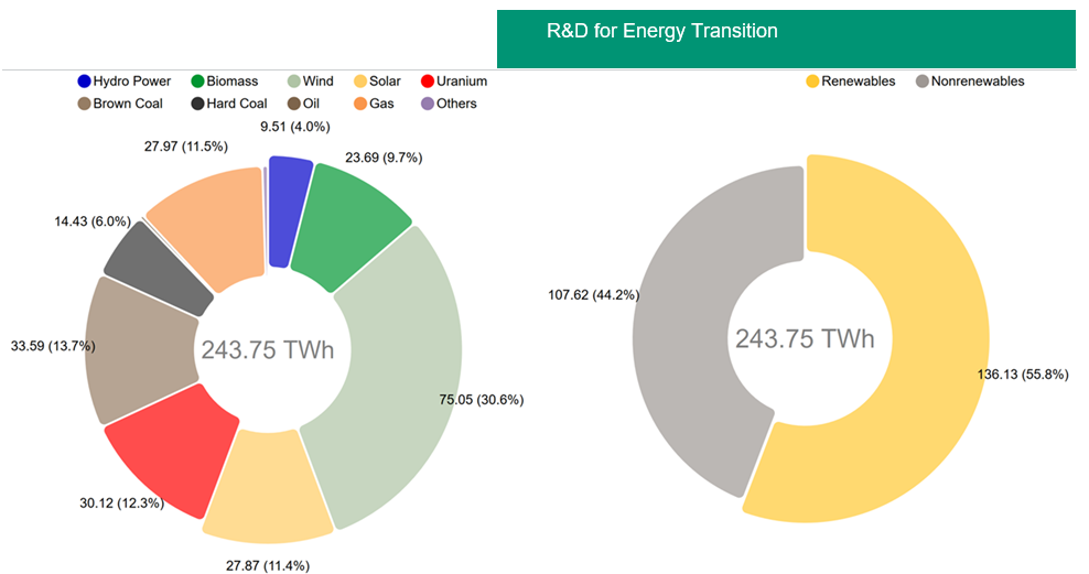La participación de las energías renovables en la generación total de electricidad bruta aumentó por encima del 50% por primera vez. La generación bruta de electricidad también incluye la producción propia de la industria (compañías en el sector manufacturero, así como en minería y canteras) y las pérdidas internas de las centrales eléctricas convencionales. Ambas no alimentan a la red eléctrica pública.