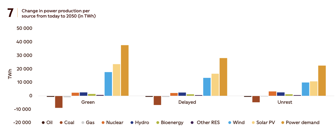 En el Green Scenario, el calentamiento global puede limitarse a 1,9 grados, en línea con el objetivo de 2 grados del Acuerdo de París, aunque insuficiente para alcanzar el objetivo de 1,5 grados. Sin embargo, si el progreso en la transición energética no continúa a un ritmo elevado, el informe prevé un aumento de temperatura de alrededor de 2,4 grados, con consecuencias importantes para las personas y el planeta.