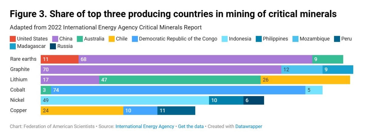 Países productores de minerales críticos. Imagen: IEA