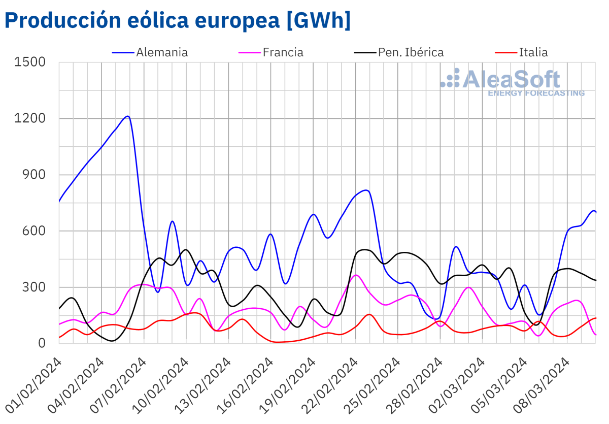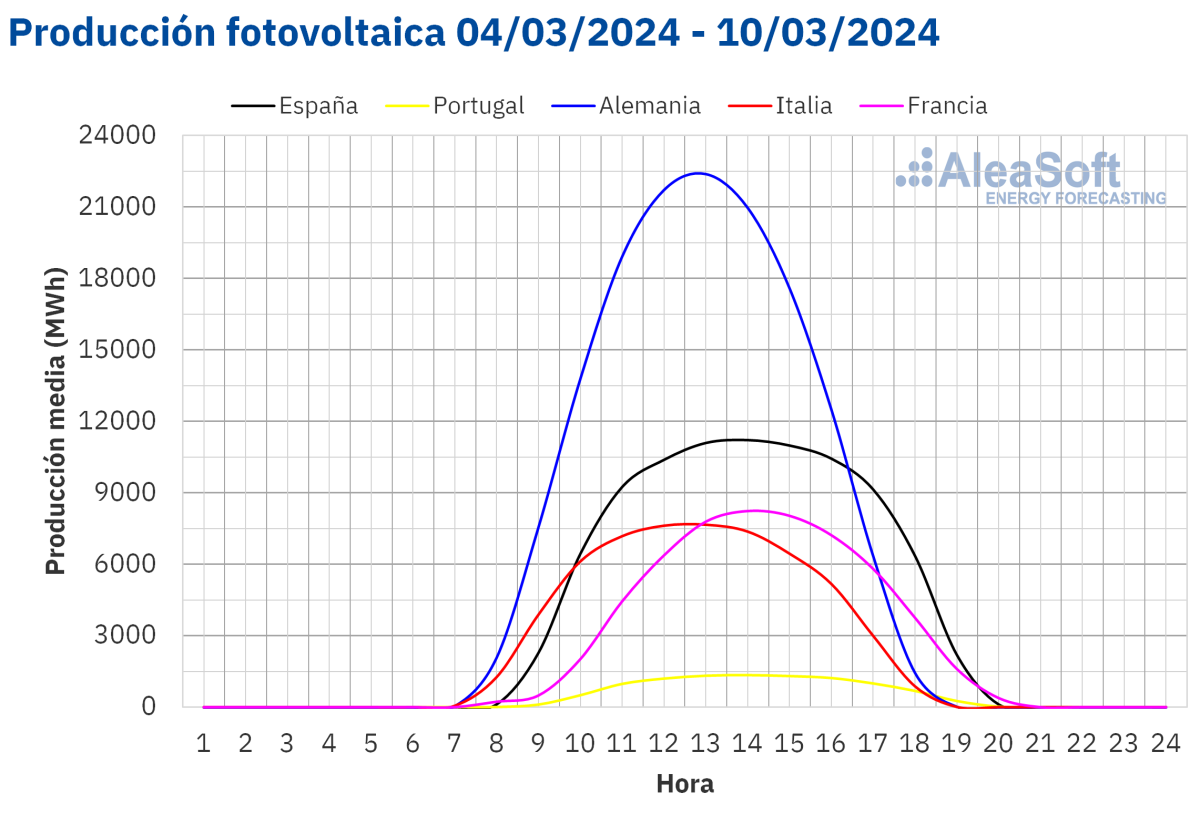 Fuente: Elaborado por AleaSoft Energy Forecasting con datos de ENTSO-E, RTE, REN, Red Eléctrica y TERNA.