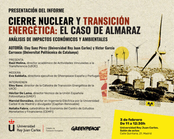 Según Greenpeace, el informe analiza el impacto del cierre programado de la central nuclear de Almaraz y las consecuencias de una eventual prórroga de su operación sobre el sistema eléctrico peninsular, el proceso de transición energética, las emisiones de gases de efecto invernadero y el coste económico para la sociedad española.