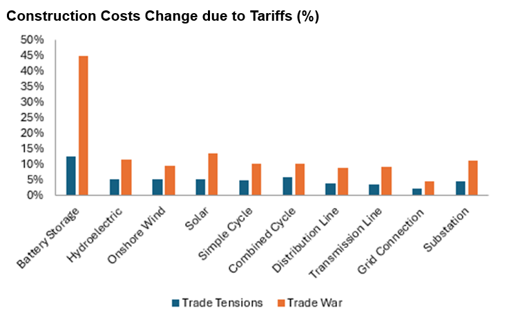 Las recientes políticas arancelarias en Estados Unidos aumentarán el coste de las tecnologías de generación de energía, siendo el almacenamiento el que sufrirá el mayor incremento debido a su dependencia de las importaciones chinas, según un informe reciente de Wood Mackenzie.