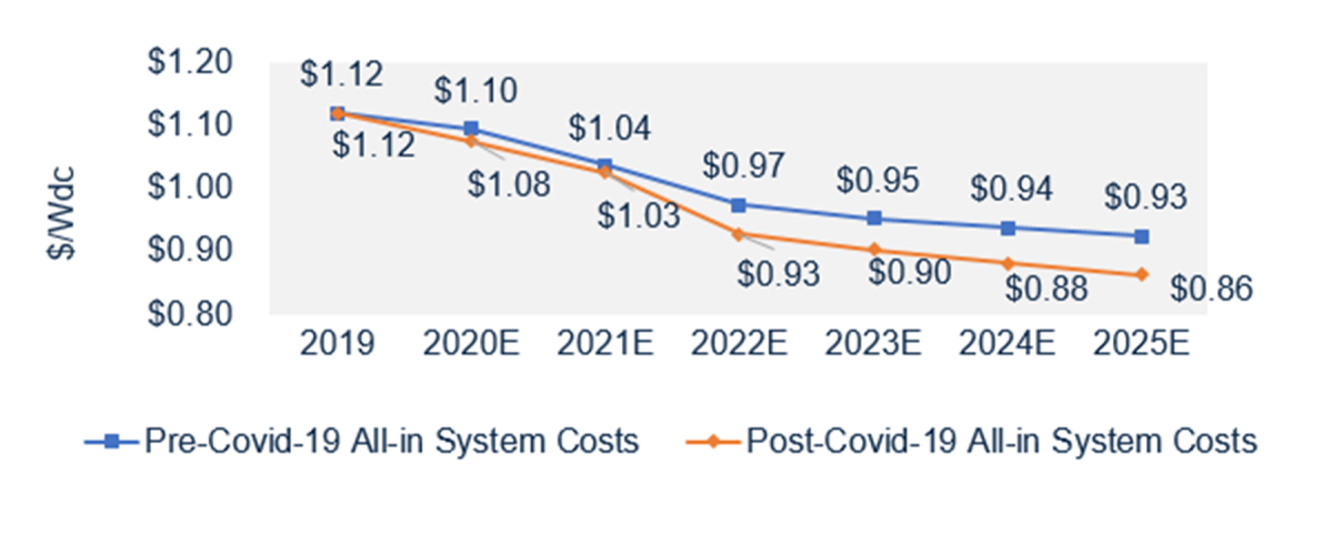 Si bien existe un riesgo a corto plazo de aumentos de precios para proyectos más grandes de C&I y proyectos a gran escala, según Wood Mackenzie, no se espera que los costos generales del sistema 2020 se vean significativamente afectados por el coronavirus en estos segmentos.