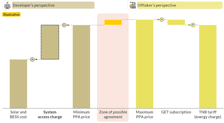 Sin embargo, los participantes deben pagar un System Access Charge (SAC), una tarifa por utilizar la red eléctrica nacional. Aunque el desarrollador paga formalmente este cargo, su coste suele trasladarse a las negociaciones del PPA, influyendo en el precio final de la electricidad renovable.
