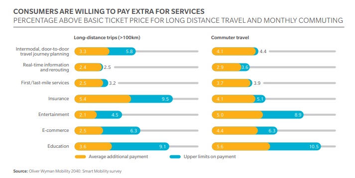 "Para el año 2040, los nuevos servicios verán multiplicada por cinco su participación en los gastos del viaje, con ingresos estimados de 237.000 millones de euros y beneficios para los proveedores de hasta 131.000 millones de euros", añade el informe.