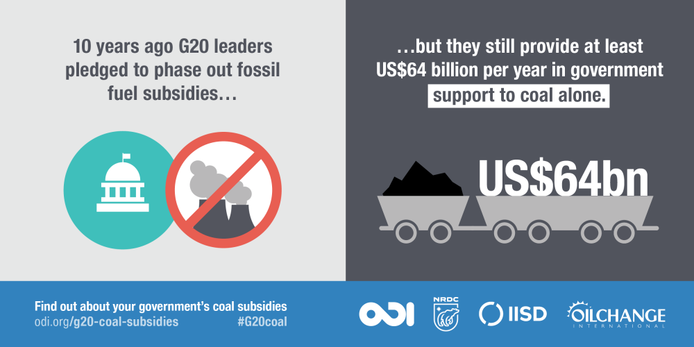 El Overseas Development Institute (ODI), es un grupo de expertos independiente con sede en Inglaterra y Gales, y este mes publicó un nuevo informe titulado Subvenciones al carbón del G20: Seguimiento del apoyo del gobierno a una industria en decadencia que rastrea y analiza el progreso de cada país del G20 en la eliminación gradual de las subvenciones a la producción y consumo de carbón.
