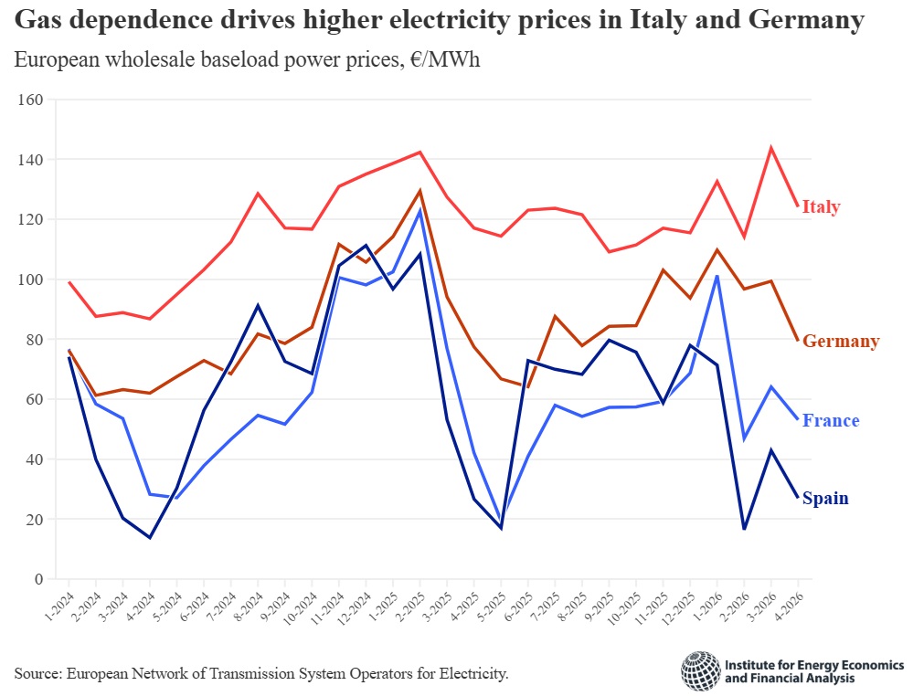 Aumentar la capacidad renovable por sí solo no resolverá el problema. La congestión de la red ya está limitando la producción renovable en varios mercados. IEEFA estima que Italia recorta entre 2 y 4 teravatios hora de energía renovable al año. En Alemania, los costes de redispatch y recorte han superado los 3.000 millones de euros anuales en los últimos años, alcanzando más de 4.000 millones en 2022, según la Agencia Federal de Redes del país. Ambos países siguen dependiendo del gas para cubrir picos de demanda, equilibrar el sistema y, en algunos casos, para generación intermedia.