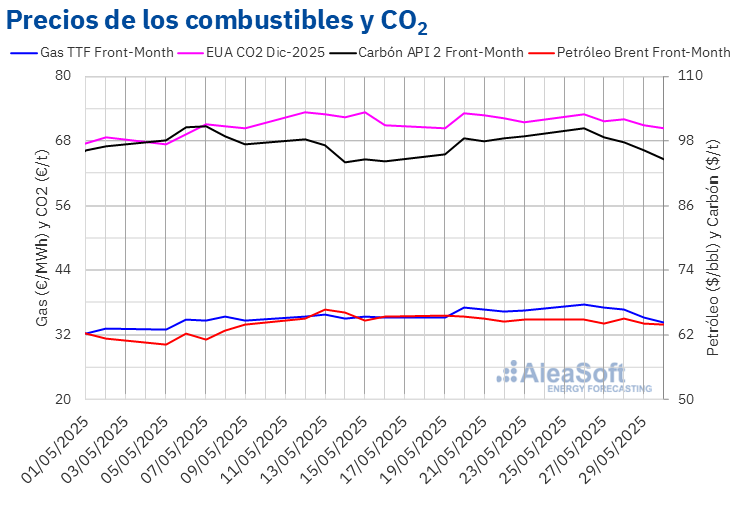 En la semana del 26 de mayo, el descenso del precio semanal del gas y de los derechos de emisión de CO2, así como la caída de la demanda en algunos mercados, propició el descenso de los precios en la mayoría de los mercados eléctricos europeos. Sin embargo, el incremento de la demanda y la caída de la producción eólica en España, Italia y Portugal contribuyeron al incremento de los precios en estos mercados.
