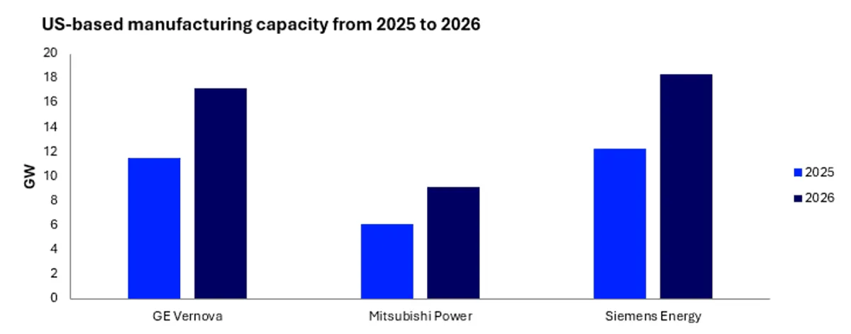 Se espera que los pedidos de turbinas alcancen su punto máximo en 2026, ya que los desarrolladores intentan asegurar equipos para añadir 63 GW de capacidad de gas entre 2026 y 2030.