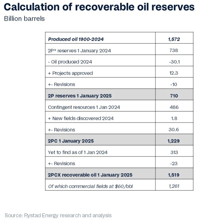 Los recursos de petróleo recuperables descubiertos aumentaron en 5.000 millones de barriles a pesar del crecimiento de la producción en 2024