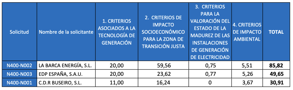 La capacidad total que entraba en concurso era de 354 MW y con los 320 MW de La Barca sobran unos 34 MW que se intentaron repartir en los otros proyectos pero uno por no tener calificación suficiente para ser adjudicatario y el otro por no querer hacer su proyecto con menor capacidad se quedó sin adjudicar dicha capacidad.