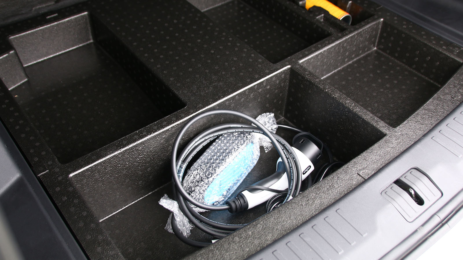 El nexo con el interior lo realizamos a través del maletero porque al igual que ocurre con la versión 4x4 del gasolina, este SHS tiene un volumen reducido, de solo 340 litros, que es muy poco para un coche de 4,5 metros. Sí, sabemos que los phev suelen ver mermada su capacidad pero me sigue pareciendo poco, más aún cuando te pongo en contexto que un Golf (prueba) o un Seat León (prueba) tienen 380 litros. Al menos tenemos unas formas regulares y un doble fondo para guardar los cables de carga.