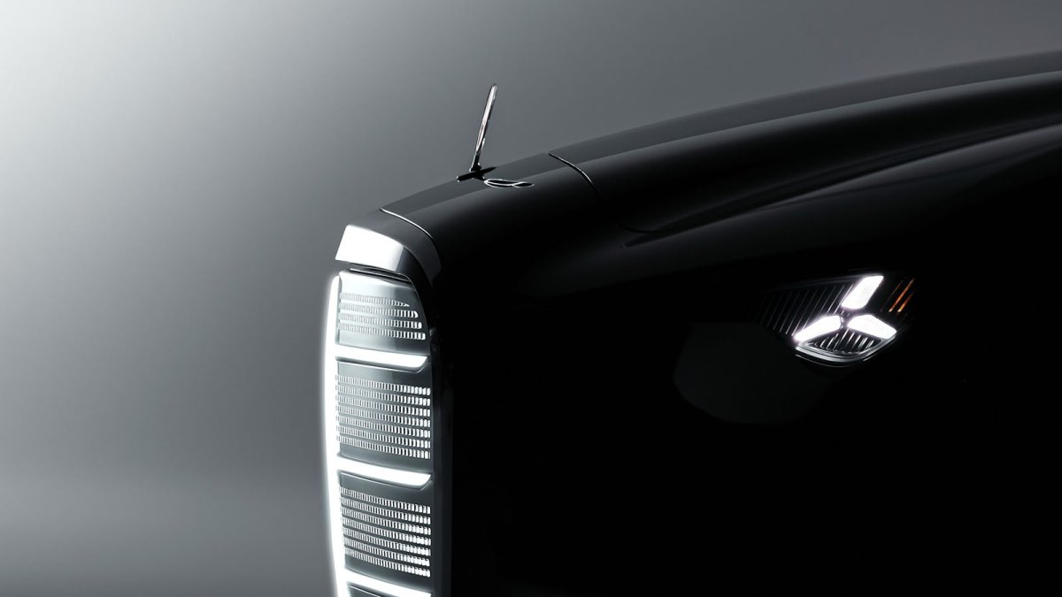 La parrilla, con estructura en vidrio ahumado e iluminación perimetral, fusiona el legado de la estrella de Mercedes con tecnología visual. El acabado exterior en negro profundo enfatiza los volúmenes escultóricos, mientras los faros delgados y agresivos adoptan la última tecnología lumínica, acompañando al capó largo y los glamurosos gills laterales que recuerdan las grandes berlinas de los años treinta.