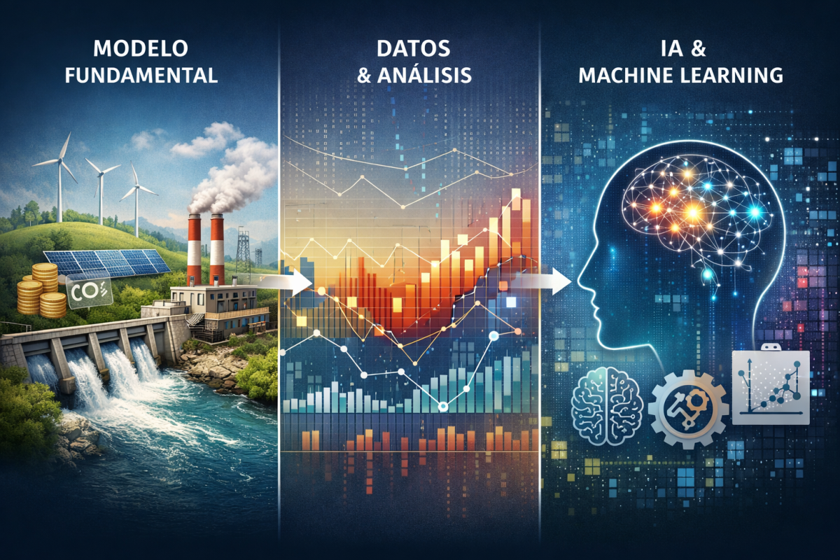 En los mercados eléctricos, muchos modelos fundamentales fallan no por la física del sistema, sino por no reproducir el equilibrio real que fija el precio. Un enfoque híbrido que combina estructura fundamental con modelos estadísticos, Inteligencia Artificial y Machine Learning permite capturar dinámicas temporales, no linealidades y cambios de régimen, mejorando la señal de precio y su distribución para decisiones de inversión y cobertura.