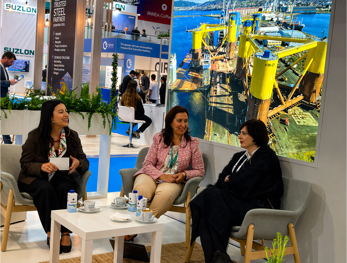 Uno de los puntos que más interés ha generado ha sido la presentación de los desarrollos de monodon, el área de investigación deeptech de Navantia, junto al centro de excelencia Navantia COEX Green Energies. Las responsables de estas áreas, Patricia Sierra y Sara Oliveira, han desgranado cómo tecnologías en fases tempranas pueden transformar el diseño y la operatividad de los parques eólicos marinos.