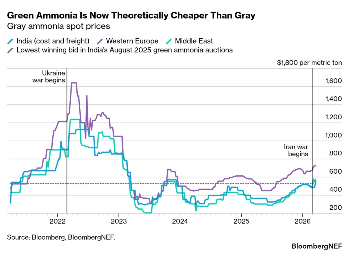 Esto ayuda a explicar por qué los altos precios del amoníaco tras la guerra en Ucrania han generado pocas decisiones finales de inversión en proyectos de hidrógeno verde. Con los precios del amoníaco muy por debajo de los máximos de 2022, es difícil ver por qué 2026 sería diferente, incluso si los precios siguen subiendo y se mantienen altos durante muchos meses.