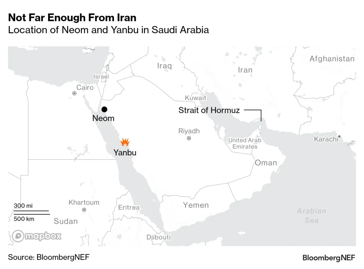 El mayor proyecto de amoníaco verde en desarrollo con planes de exportación a Europa, Neom en Arabia Saudí, no es inmune a ataques iraníes a pesar de estar en la costa del Mar Rojo. El puerto de Yanbu, donde se planea un proyecto aún mayor orientado a la exportación, fue atacado en marzo por un dron y un misil balístico.