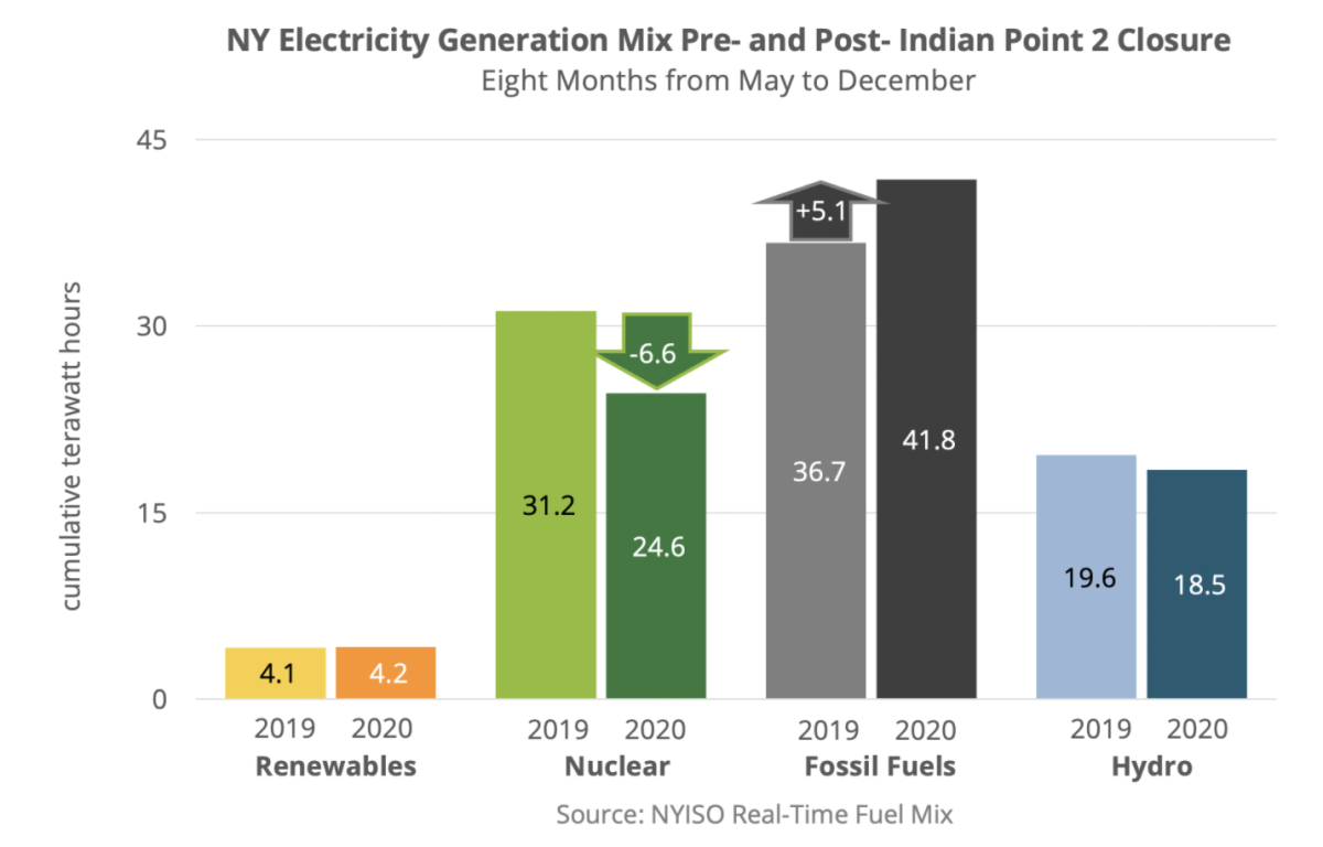 A pesar de la reducción de la demanda de energía de 2.753 GWh durante la pandemia de Covid-19, el estado de Nueva York generó significativamente más electricidad, 5.068 GWh, a partir de combustibles fósiles en 2020 que el año anterior debido a este cierre.