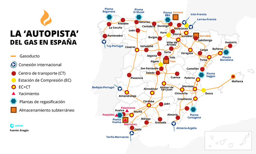 Respecto al gas, Rusia se situó en el cuarto lugar en la lista de mayores proveedores para España, con un 8,9 % del total de las importaciones en 2021 (37.027 GWh), mientras que Argelia siguió siendo el principal suministrador de gas natural a España, con el 42,8 %; seguido por Estados Unidos, con el 14,4 %, y Nigeria, con el 11,5 %.
