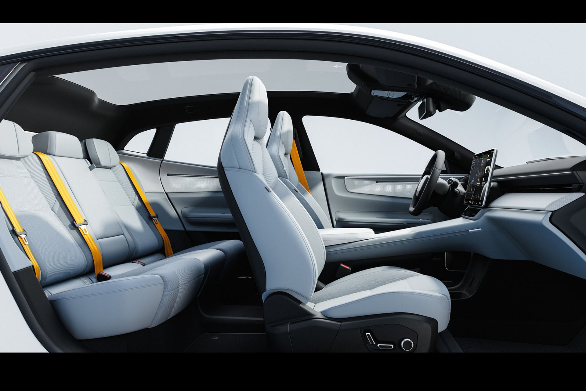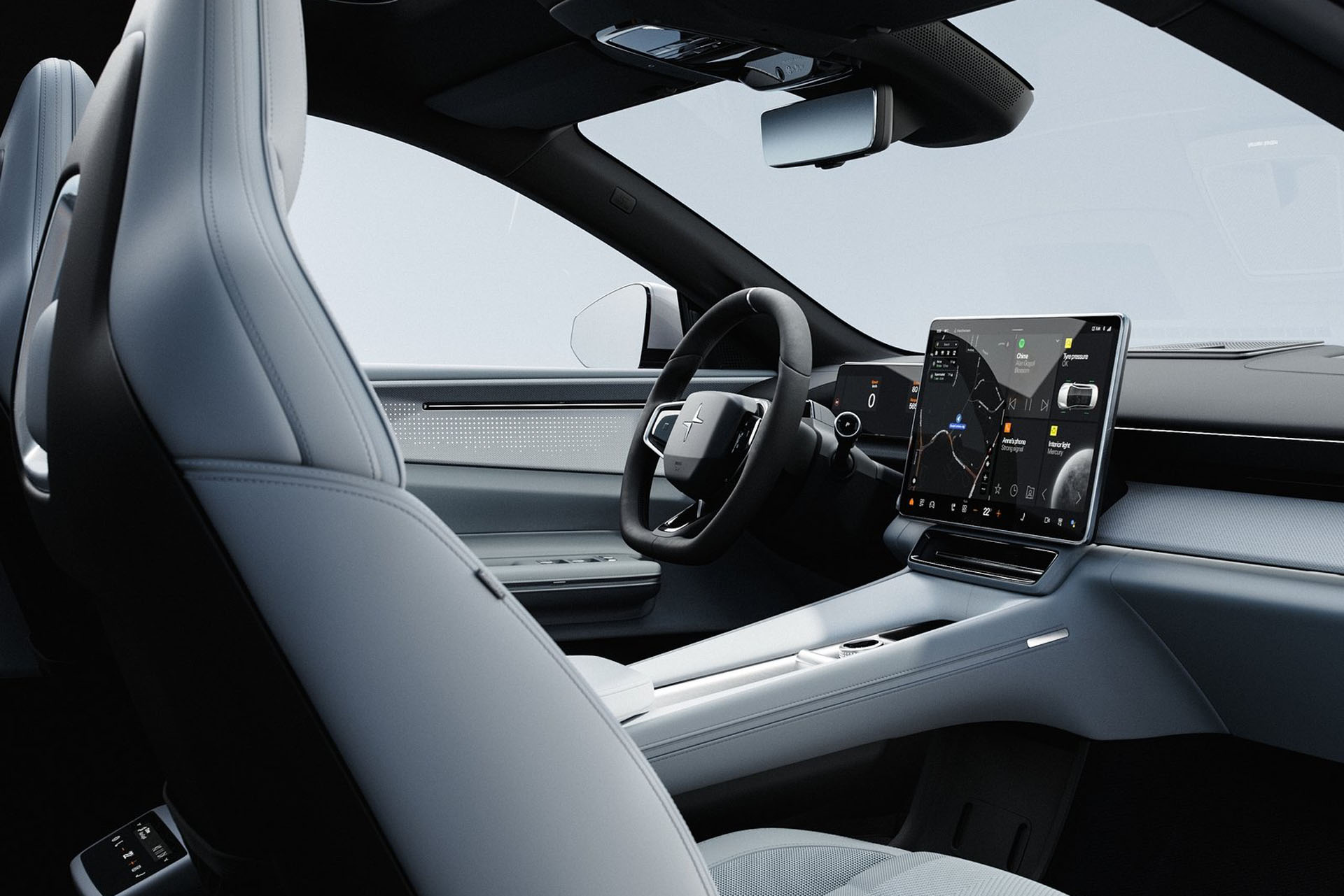 En el interior se mantiene el diseño minimalista pero la gran diferencia con respecto al Polestar 2 es que la pantalla central tiene está dispuesta horizontal de 15,4 pulgadas en la que sí se mantiene el sistema multimedia Android Automotive con aplicaciones como Google maps o Spotify, entre otras. Otra de las funciones que llaman la atención es que puede estar monitorizando constantemente al conductor para detectar pérdidas de atención u otros problemas, sin grabar vídeos para garantizar la privacidad. La digitalización se completa con un cuadro de instrumentos de 10,2 pulgadas y un Head-up display proyectado que hace las veces de una pantalla de 14,7”.