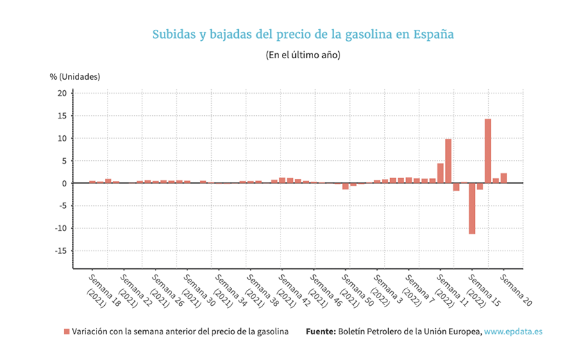 Con respecto a hace un año, el precio medio del litro de gasolina se ha encarecido un 39,73%, mientras que en el caso del gasóleo es un 59,38% más caro, aunque sin tener en cuenta la bonificación vigente actualmente.