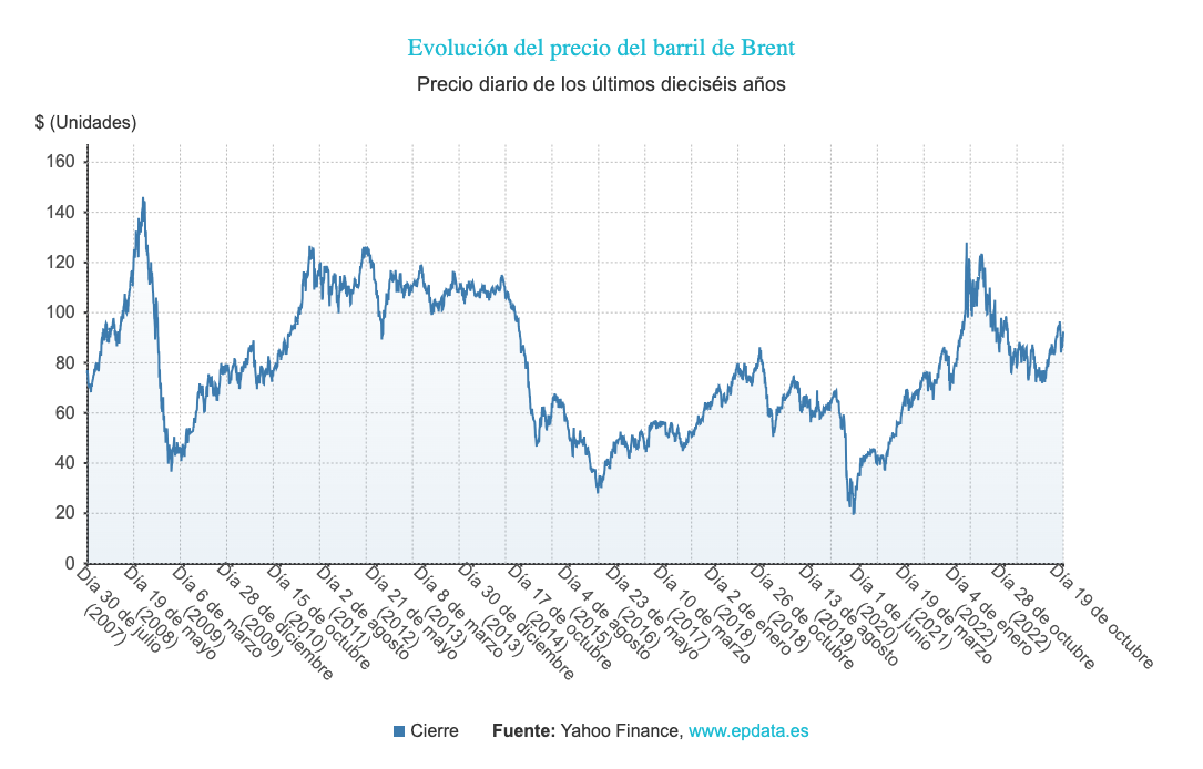 De este modo, el precio del barril del Brent alcanza niveles ligeramente superiores a los registrados hace un año, mientras que en el caso del WTI el coste es alrededor de un 5% superior al de las mismas fechas de 2022.