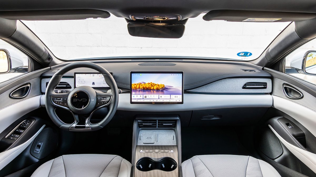 La digitalización se confía a una pantalla central de 15,6 pulgadas (12,8 en el acceso), sin función giratoria, pero con la última versión del sistema multimedia de BYD y navegación predictiva conectada. El equipo se complementa con cuadro digital de 8 pulgadas, cargador inalámbrico de 50W y un túnel central despejado gracias al selector de cambio reubicado en la columna de dirección.